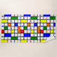 This beach towel has a mid-century modern design of a grid with coloured squares and rectangles. It also has coloured circles placed on the grid lines. If you like the design but prefer different colours, message me.