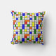 This throw pillow has a mid-century modern design of a grid with coloured squares and rectangles. It also has coloured circles placed on the grid lines. If you like the design but prefer different colours, message me.