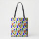 This tote bag has a mid-century modern design of a grid with coloured squares and rectangles. It also has coloured circles placed on the grid lines. If you like the design but prefer different colours, message me.