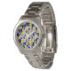 This women's watch has a mid-century modern design of a grid with coloured squares and rectangles. It also has coloured circles placed on the grid lines. If you like the design but prefer different colours, message me.