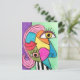 This bright, colourful art postcard was created with my original abstract chalk pastel art featuring a whimsical cubism design with big eyes and red lips in a cheerful vibrant pink, green, blue, yellow, purple colorblock design with a touch of black and white stripes. These little works of art are not only great to send through the mail, they are also an inexpensive way to collect all the pieces you love and look great framed and matted.