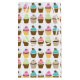 Sweet and whimsical pattern features six different cupcakes in fun and vibrant colours