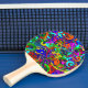 This is a Very Colourful Curls and Swirls Ping Pong Paddle. You SELECT Black or Red for the blank side!