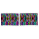 Stamped with colourful image of curved triangles or coloured ripples. In different vibrant colours, yellow, lime green, orange reddish, light blue, pink, lilac, red brownish or dark brown... with changes of tonalities that can cause the perception of curves or waves and some luminosity in some traces.