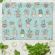 Colourful Cute Cactus In Hand Drawn Style Pattern Tea Towel