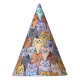 Colourful Cute Cat Crowd Pattern Whimsical Cat Fac Party Hat