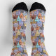 Colourful Cute Cat Crowd Pattern Whimsical Cat Fac Socks
