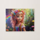 Colourful Beautiful Fluffy Cute Little Fairy With Rainbow Colours in the Enchanted Forest, Magic World, Fantasy Art for girls. Girly Design.