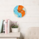Colourful children's wall clock with smiling fire and water elemental creatures hugging. This cute and colourful clock would appeal to someone who loves bright and warm colours and would be a great addition to the decor of a children's room with its blue and orange colour scheme.
