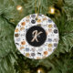 Colourful Cute Funny Cats & Paw Pattern Monogram Ceramic Tree Decoration