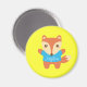 A cute fridge magnet with a cartoon of a reddish brown little fox which is wearing a blue t-shirt with name personalisation for the child recipient. Colourful and attractive for the little ones to use the magnet to attach their paper drawings and pictures to the fridge. Background colour can be changed in customisation mode.