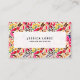 A generic all purpose business card featuring a cutout inspired botanical floral design with a red, yellow, and pink colour scheme. Personalise with your information on front and back over sheer rectangle.