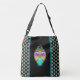 Colourful Cyan and Black Oracle Owl Crossbody Bag