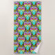 Colourful Cyan and Black Oracle Owl Pattern Beach Towel