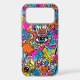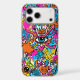 Add a playful pop of chaos to your phone. This slim-fit artistic case for the iPhone 17 Pro Max showcases a unique collage of hand-drawn cyberpunk doodles, smiling monsters, all-seeing eyes, lightning bolts, and stars in a vivid neon colour palette. It is a creative and durable accessory for modern tech.