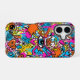 Add a playful pop of chaos to your phone. This slim-fit artistic case for the iPhone 16 case showcases a unique collage of hand-drawn cyberpunk doodles, smiling monsters, all-seeing eyes, lightning bolts, and stars in a vivid neon color palette. It is a creative and durable accessory for modern tech.