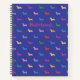This is a very fun, whimsical, and colourful notebook featuring multi-coloured, cartoon dachshunds against a bright, blue background. Go ahead and customise the interior pages, the spiral colour, the cover thickness, and even customise the text. This is a great notebook/journal for any dog lover.