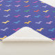 This is a very colourful and whimsical blanket design. It features multi-coloured, cartoon dachshunds in a fun pattern against a blue background. This makes for a great, fluffy blanket for any dachshund owner or dog lover.