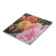 Gorgeous, ceramic tile featuring the photo image of a garden of colourful, orange and pink Dahlia flowers. A lovely, floral design! Select your tile size. Makes a great kitchen trivet!