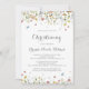 This colourful dainty wild flowers christening invitation is perfect for a rustic baby christening or baptism. The design features hand-painted watercolor beautiful pink, blush, blue, navy, yellow, purple and green wild flowers.