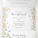 This colourful dainty wild flowers trifold wedding invitation is perfect for a rustic wedding. The design features hand-painted watercolor beautiful pink, blush, blue, navy, yellow, purple and green wild flowers.