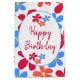 Orange, red, and blue daisy flowers on white background for general birthday.