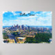 Beautiful Poster panorama view over the city of Dallas, Texas showcasing its skyline with landmarks and buildings. Makes a great travel souvenir of the american city for every tourist and visitor. Make it your own and purchase now.
