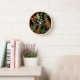 Colourful Dark Fern Botanical Foliage Floral Clock, simple colourful dark floral design.