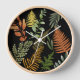 Colourful Dark Fern Botanical Foliage Floral Clock