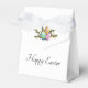 Colourful decorative Easter eggs favour box, with an eggs and botanical greenery design with a white background. Elegant black script typography lettering can be customised with your own message. A lovely addition to your Easter party celebration.