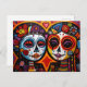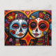 Vibrant Dias de los Muertos is a striking piece of art that celebrates the rich cultural heritage of Mexico and the traditional Day of the Dead festivities. Dominating the canvas are two meticulously detailed calavera skulls, each adorned with an explosion of vivid and electrifying colours.