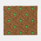 A geometric design based on a pattern of black labyrinths diagonally aligned. A green spot is centred in each maze. By default the background is orange, but you can replace the colour to create new effects. Nearly any colour will look great! Other colour versions are available.