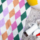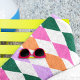 Retro beach towel with diamond pattern in pink, orange, green and lilac. If you are into mid century modern aesthetic and colourful designs, this product is here for you! Bring colour and retro vibes to the beach with this trendy and stylish towel. You can check my shop PatternTripCo for other products with the same pattern.