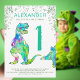 Colourful dinosaur 1st birthday party invitation. Celebrate your little T-Rex 1st birthday party in wild one dino style. A T-Rex roar and a cute stegosaurus shuffle invite Dino fans to a first birthday party for dinosaur lovers. Personalise this colourful watercolor Tyrannosaurus rex and stegosaurus wild one birthday party invitation by adding the name of the birthday boy or girl, the number of the birthday and the party details in modern typography and you are all set for a fun packed dinosaur themed dino birthday. All dinosaur species are welcome. Prehistoric jurassic era Dinosaur illustrations, original artwork by artist by Catherine Sweetman