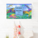 Celebrate that special 5th birthday with this fun personalised colourful dinosaur banner. All the prehistoric Jurassic era dinos are here with T. rex or tyrannosaurus, spinosaurus, stegosaurus,brontosaurus and flying pterodactyl all in bright colours and ready to party. Original artwork by artist Catherine Sweetman