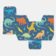 Colourful Dinosaur silhouette pattern. Tyrannosaurus Rex, titanosaurs, Triceratop, raptors, Ankylosaurs, Dino-Birds, Stegosaurus, Apatosaurus, Pteranodon and more in a colourful pattern in blue background, and dinosaurs in green, blue, yellow and orange.