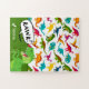 Colourful Dinosaur Pattern with Name T-Rex Green Jigsaw Puzzle