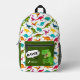 Colourful Dinosaur Pattern with Name T-Rex Green Printed Backpack