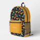 Colourful dinosaur pattern yellow black name printed backpack