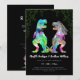 Funny Dinosaur Black and White Jurassic Wedding Invitation colourful psychedelic T-Rex Bride and Groom | Modern Jungle Theme with QR Code RSVP