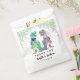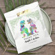 Delight your guests with these funny colourful dinosaur themed wedding thank you favour bags with fun dinosaur bride and groom and Jurassic jungle foliage. Easy to customise with the bride and grooms names, the wedding date in modern typography script. Fun T-Rex bride and groom illustrations in psychedelic purple blue pink green yellow and orange hues with jungle foliage in green hues. Unique original dino artwork by artist Catherine Sweetman