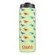 Colourful dinosaurs pattern on green thermal tumbler