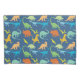 Colourful Dinosaur silhouette pattern. Tyrannosaurus Rex, titanosaurs, Triceratop, raptors, Ankylosaurs, Dino-Birds, Stegosaurus, Apatosaurus, Pteranodon and more in a colourful pattern in blue background, and dinosaurs in green, blue, yellow and orange.