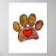 Dog paw print and heart digital watercolor painting. Custom posters for homes and businesses. Gift idea for dog lovers.