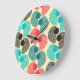 Ivory, red, and blue dots form an abstract, colourful seamless pattern.