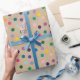 Fun colourful wrapping paper with cute colourful polkadots design in light coral, yellow, blue, aqua orange, lime and mint green, violet, purple, pink and red colours. Ornate, funky, modern and whimsical hipster design for the lover of colours. This original, classy, chic, stylish and perfect gift wrap will put a smile on the faces of friends and family when unwrapping their birthday presents.