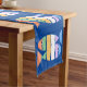 Colourful Double Fish Design Table Runner with customisable background colour.