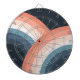 Abstract illustration of retro style rainbow design in pink, pastel pink, grey, turquoise, blue, dark blue colours on navy blue background