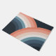 Abstract illustration of retro style rainbow design in pink, pastel pink, grey, turquoise, blue, dark blue colours on navy blue background