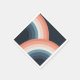 Abstract illustration of retro style rainbow design in pink, pastel pink, grey, turquoise, blue, dark blue colours on navy blue background